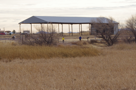 The drive to White Water Draw is about 50 miles and takes under an hour. We headed to Tombstone and drove through town. After a few miles Davis road was on our left and we took it to just after milepost 21. We turned right on to a dirt road named Coffman Road. The road sign wasn’t there but there is a sign for White Water Draw on the road. After about 2 miles we came to the parking area. It was still overcast and cold; so we bundled up and walked over to the barn that sits on the site. “The Barn” is about 30 foot tall and there usually are Barn Owls and Great Horned Owls roosting in it. One owl was there instead of the customary pair. After taking some pictures and saying “How Do” we walked on over to the viewing area to check out what was going on with the cranes and other denizens of the wetlands.